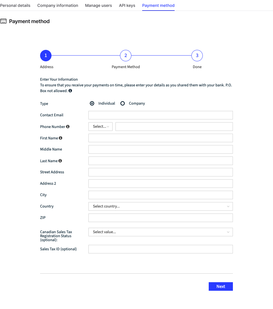 Payment Method Setup